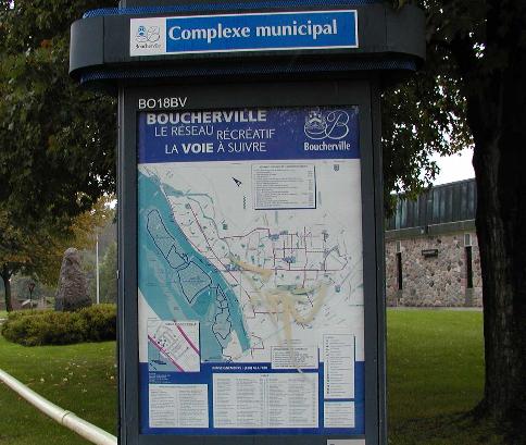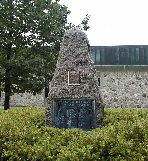 In 1967, a monument was erected to honor the first families to settle Boucherville, PQ then "New France, Canada". The monument is located in front of the Town Hall in Boucherville, and can be seen in the photo to the left of the display map below.